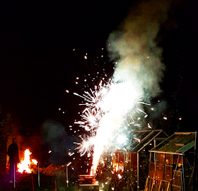 It was then time for the fireworks. My brother had set them up earlier in the day and he was in charge of lighting them. (Can you imagine the danger of me bending over a firework and trying to light it!! I think that would have been equally amusing and dangerous for all involved)